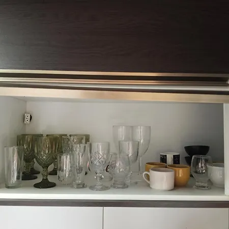 Yes, this apartment is furnished with an equipped kitchen and offers a fridge, an oven, and glassware as well. - ❓